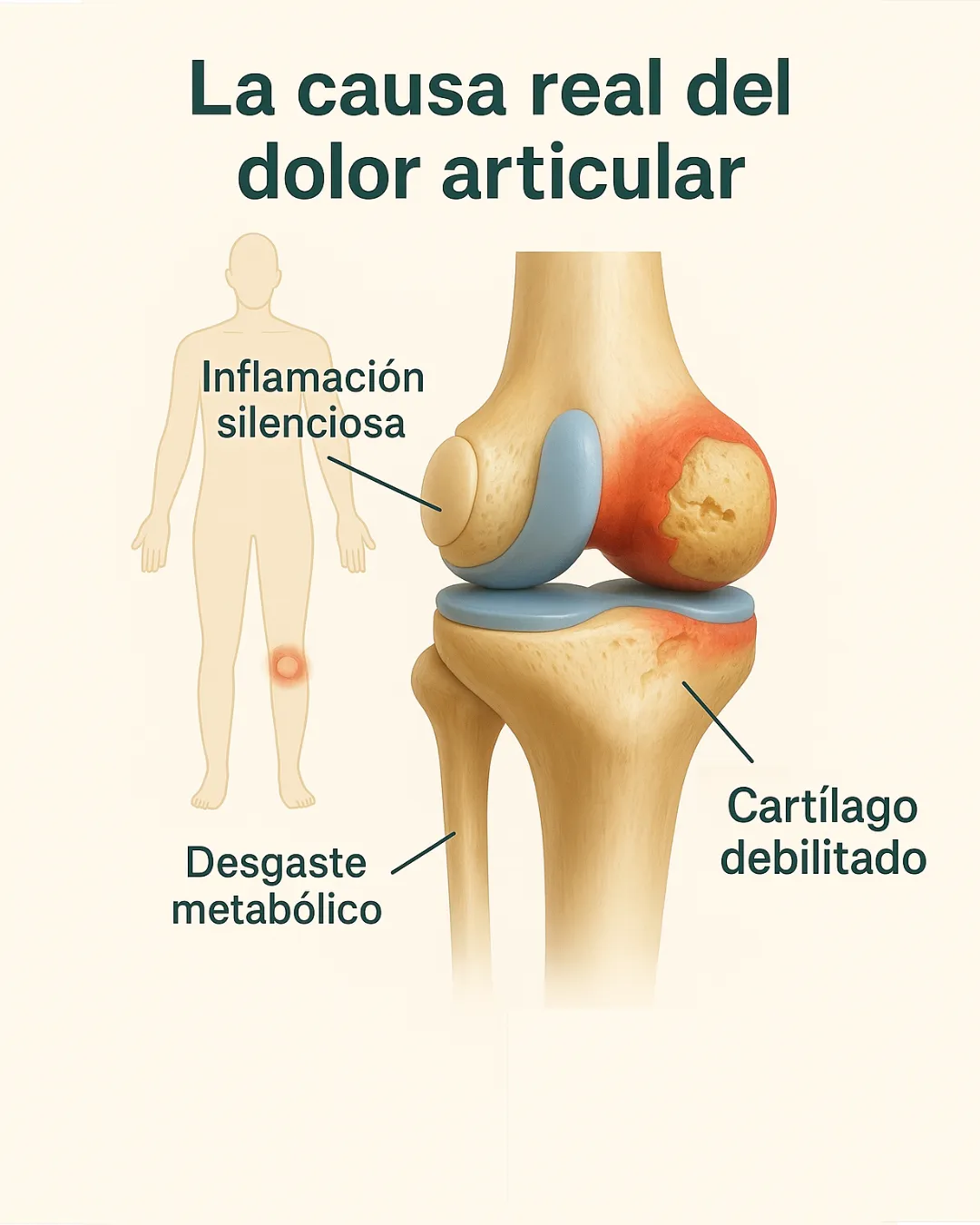 👉 La artrosis está profundamente influenciada por inflamación crónica, debilidad muscular y nutrición insuficiente para el cartílago.